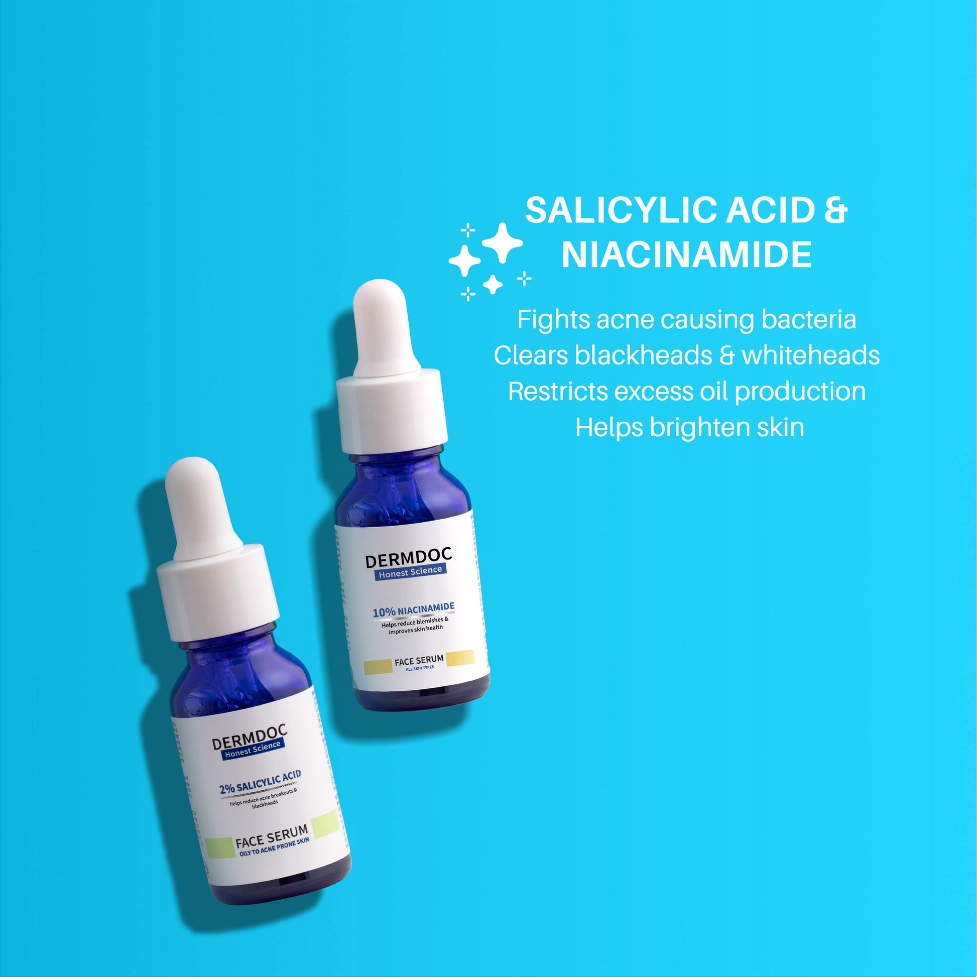 DERMDOC Combo Kit for Clear Skin | niacinamide serum | salicylic acid serum