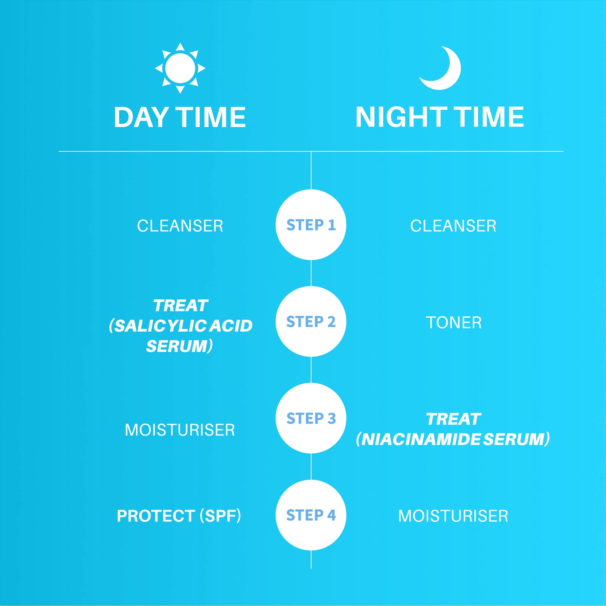 DermDoc 2% Salicylic Acid Serum in the combo helps exfoliate dead skin cells and kills acne-causing bacteria. DermDoc 10% Niacinamide Serum controls sebum & oil production and helps brighten skin tone too!